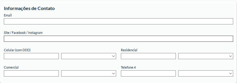 Telefone(s): Cadastre os números de contato (Celular, Residencial, Comercial).