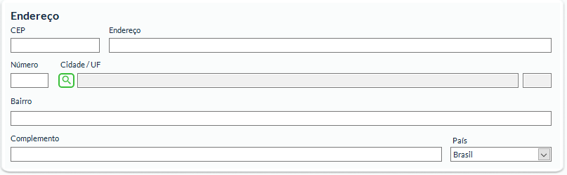 Complete os campos Endereço, Número, Bairro, Cidade/UF e Complemento, se necessário.