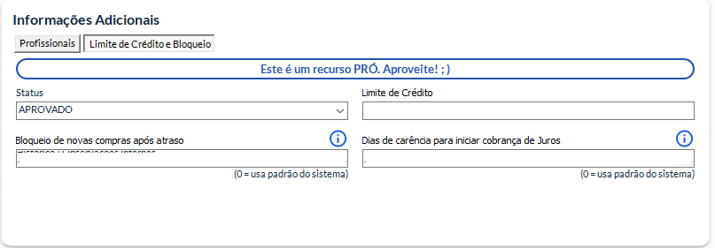 Caso precise de uma explicação mais detalhada sobre como configurar e utilizar corretamente esses recursos, recomendamos a leitura do artigo: Como Gerenciar o Limite de Crédito e Bloqueio dos Clientes.