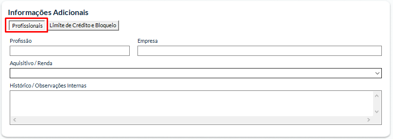 Aba Profissionais: Inclua dados de profissão, empresa e renda.