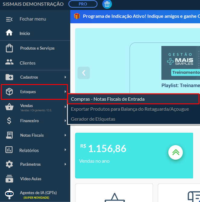 Em seguida, clique na opção Compras – Notas Fiscais de Entrada.