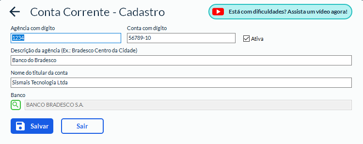 Como cadastrar uma conta corrente no Gestão Mais Simples