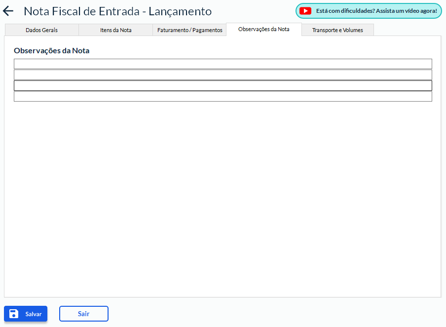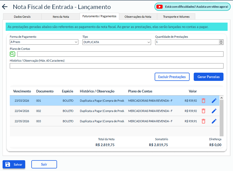 Quando a nota é importada por XML, a aba Faturamento/Pagamentos não pode ser editada, pois: