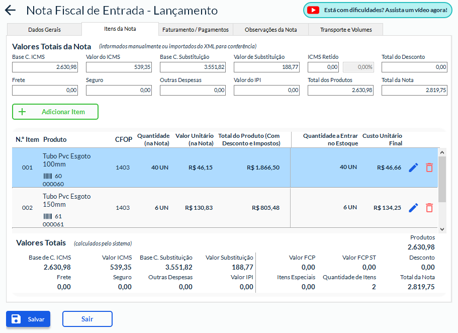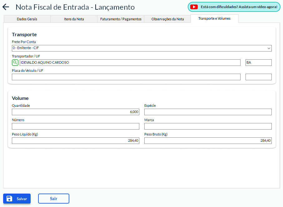 Este procedimento é válido para Notas de Entrada importadas via XML.