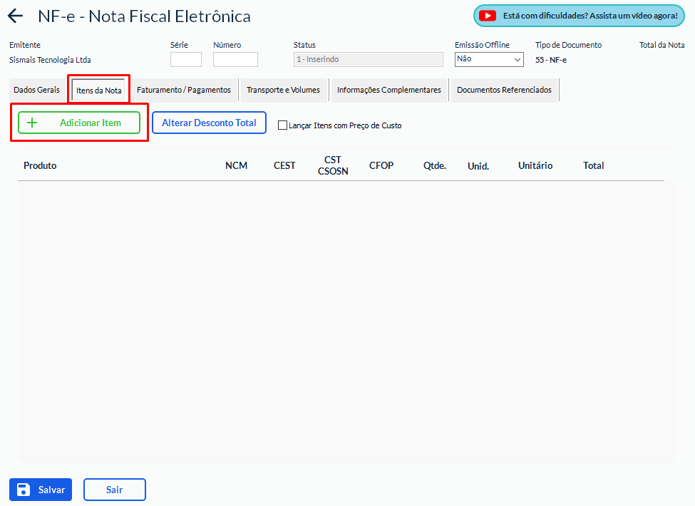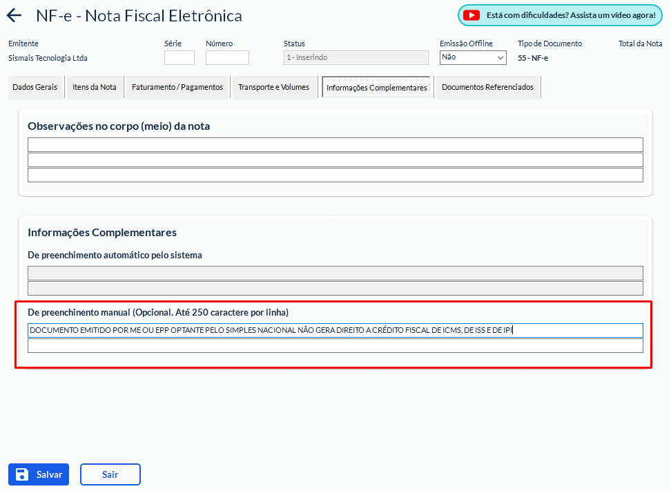 Todos os dados preenchidos na nota fiscal são de responsabilidade do cliente/usuário. Em caso de dúvidas tributárias, consulte sua contabilidade.