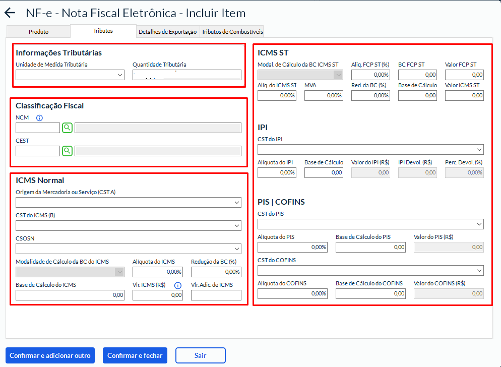 ICMS / PIS / COFINS / IPI (quando exigido)