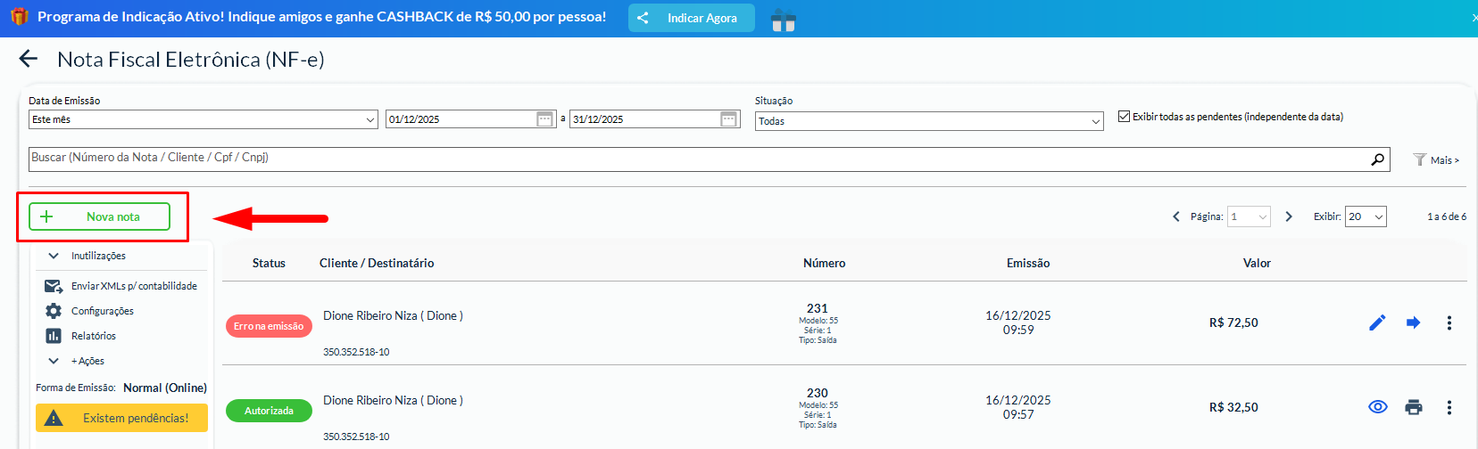 Se precisar corrigir, o caminho normalmente é cancelar (no prazo) e emitir outra — ou seguir orientação de devolução/correção conforme o caso.