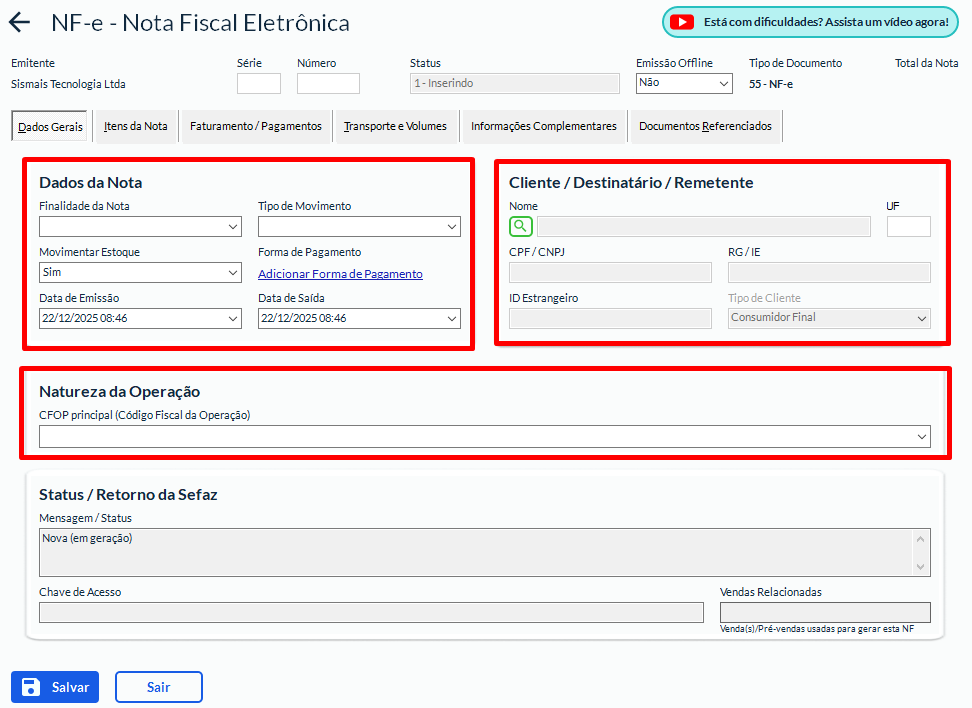 Emitir uma NF-e (Modelo 55) manualmente é ideal quando você precisa gerar a nota sem passar pelo PDV, preenchendo os dados passo a passo (cliente, CFOP, itens, tributos e pagamento) antes de transmitir para a SEFAZ.