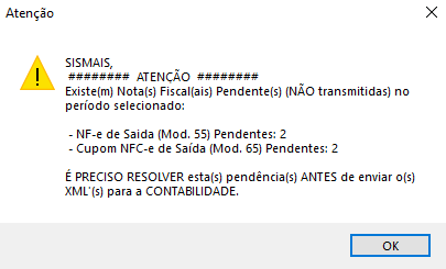 Caso haja alguma nota pendente (não enviada à SEFAZ) no período selecionado, regularize antes de prosseguir.”