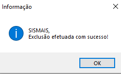 ✔️ Exclusão efetuada com sucesso!