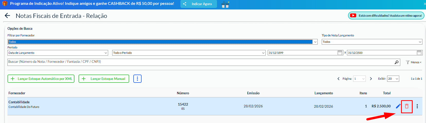 🗑️ Como excluir uma nota fiscal de entrada no Gestão Mais Simples?
