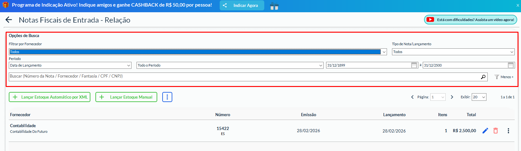 Como buscar uma nota fiscal de entrada no Gestão Mais Simples