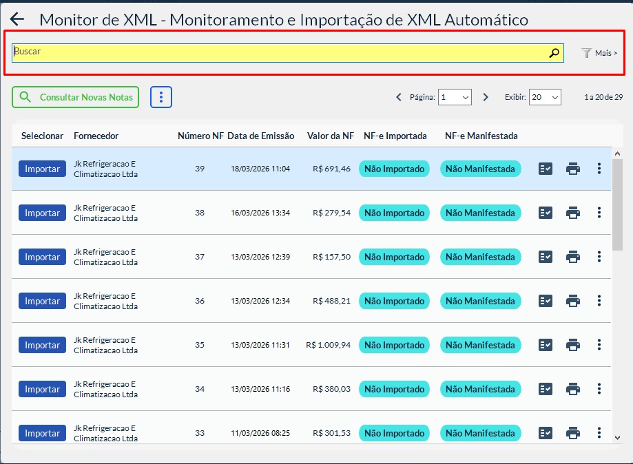 Você poderá então importar a nota no Monitor XML normalmente clicando em Importar ao lado da nota.