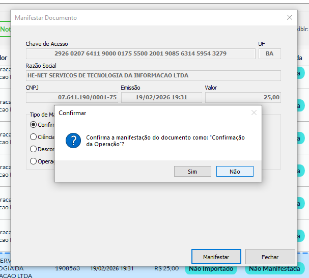 A Manifestação do Destinatário é o procedimento pelo qual o destinatário da nota fiscal confirma que recebeu ou tomou conhecimento da NF-e emitida contra o seu CNPJ.