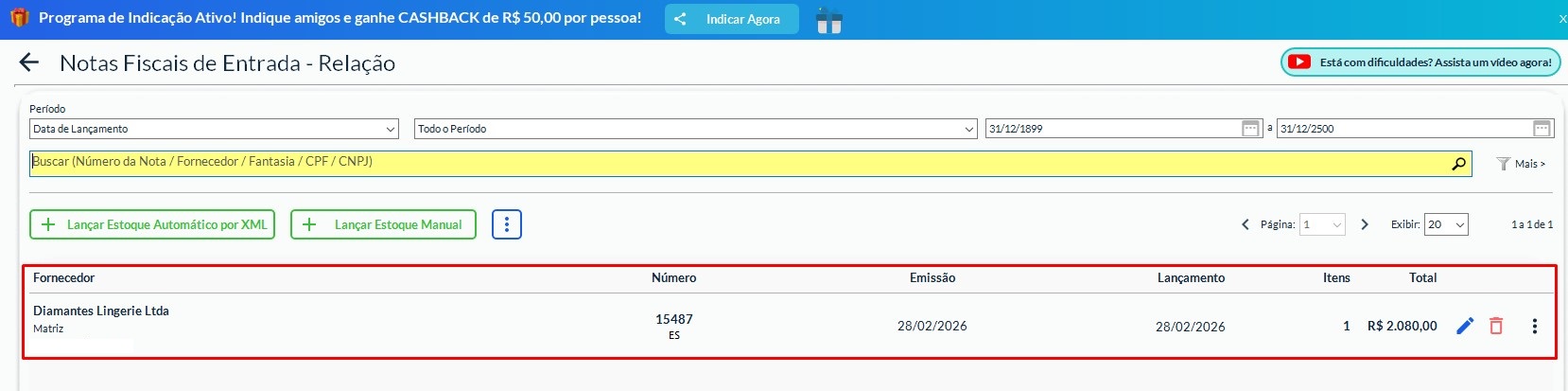 No Monitor de XML, é possível verificar facilmente quando uma nota fiscal já foi importada para o sistema.