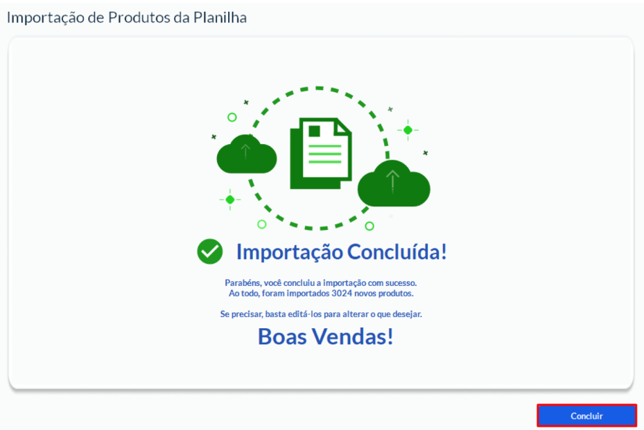 Após a confirmação, o sistema exibirá a mensagem de Importação Concluída.