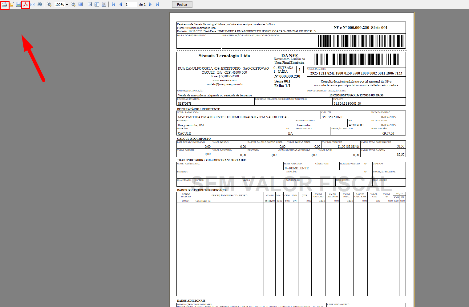 ⚠️ Atenção: se a nota ainda não estiver Autorizada pela SEFAZ, o sistema pode exibir apenas uma prévia do DANFE, que não possui validade jurídica.