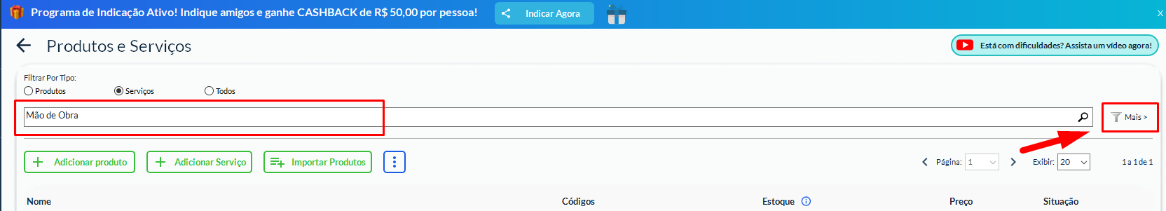No filtro Filtrar por Tipo, marque a opção Serviços.