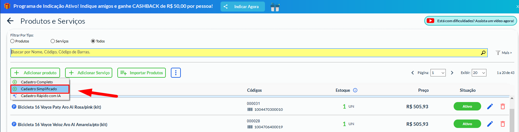 Como realizar um cadastro simplificado de produto no Gestão Mais Simples