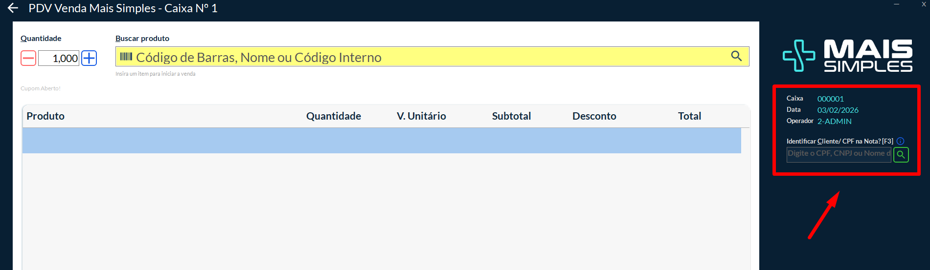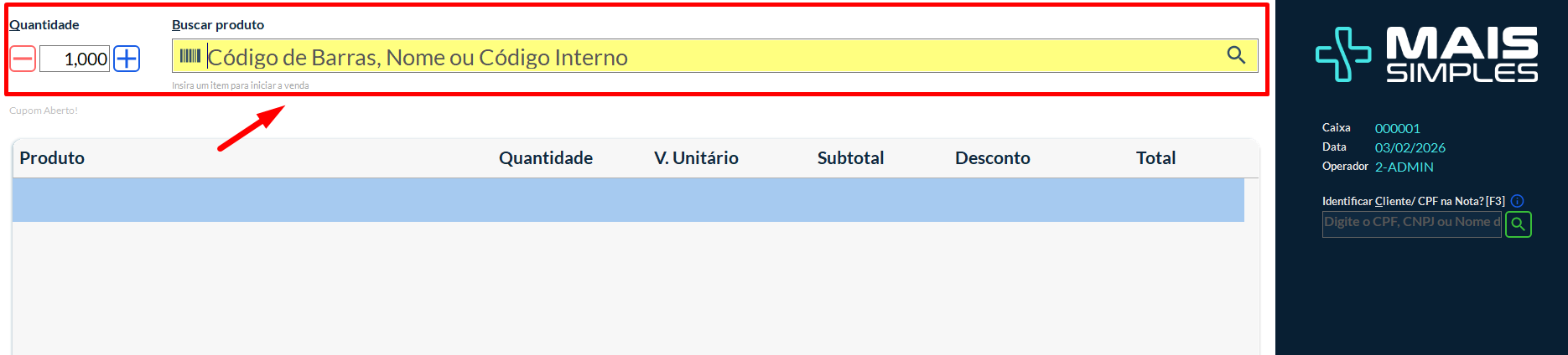 A tela de venda será aberta. Aqui você:
