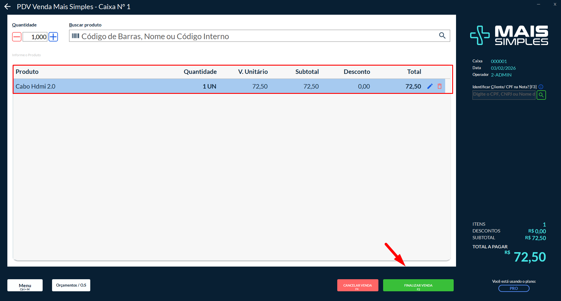 Clique em Finalizar Venda (F2).