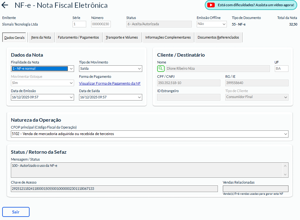 🔹 3. Nota autorizada é consulta