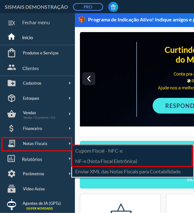 Clique em Notas Fiscais